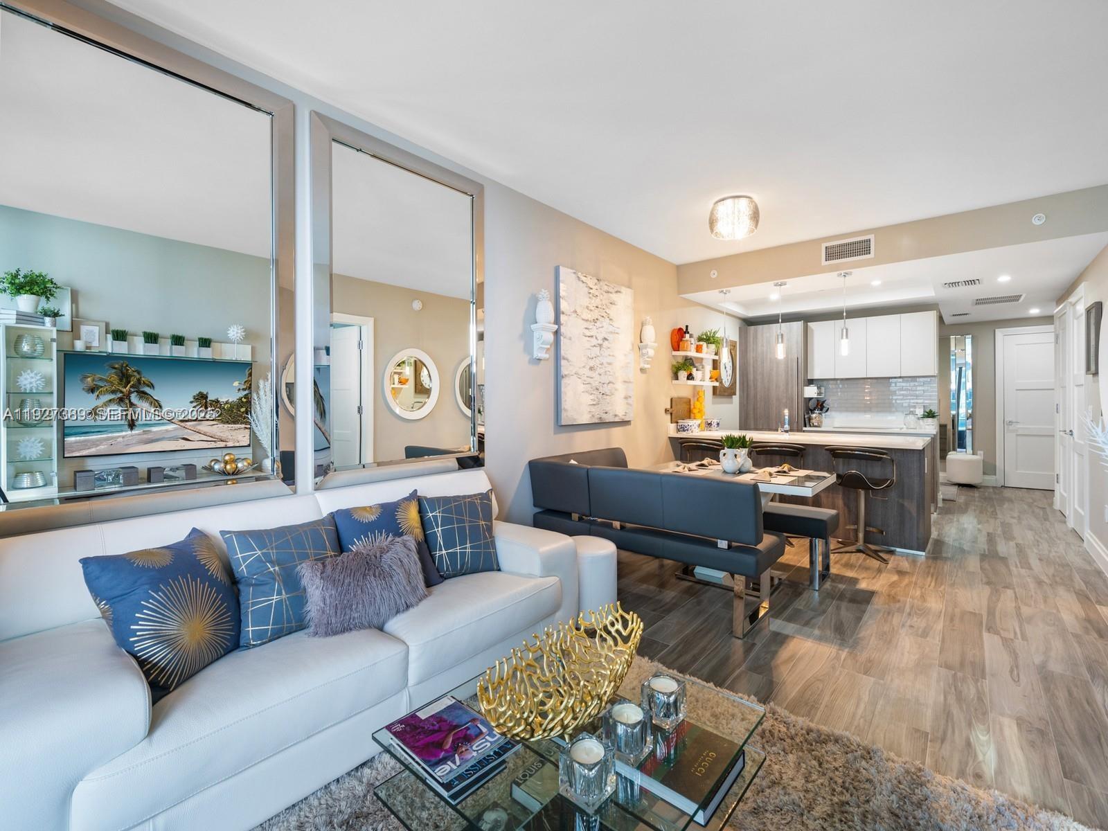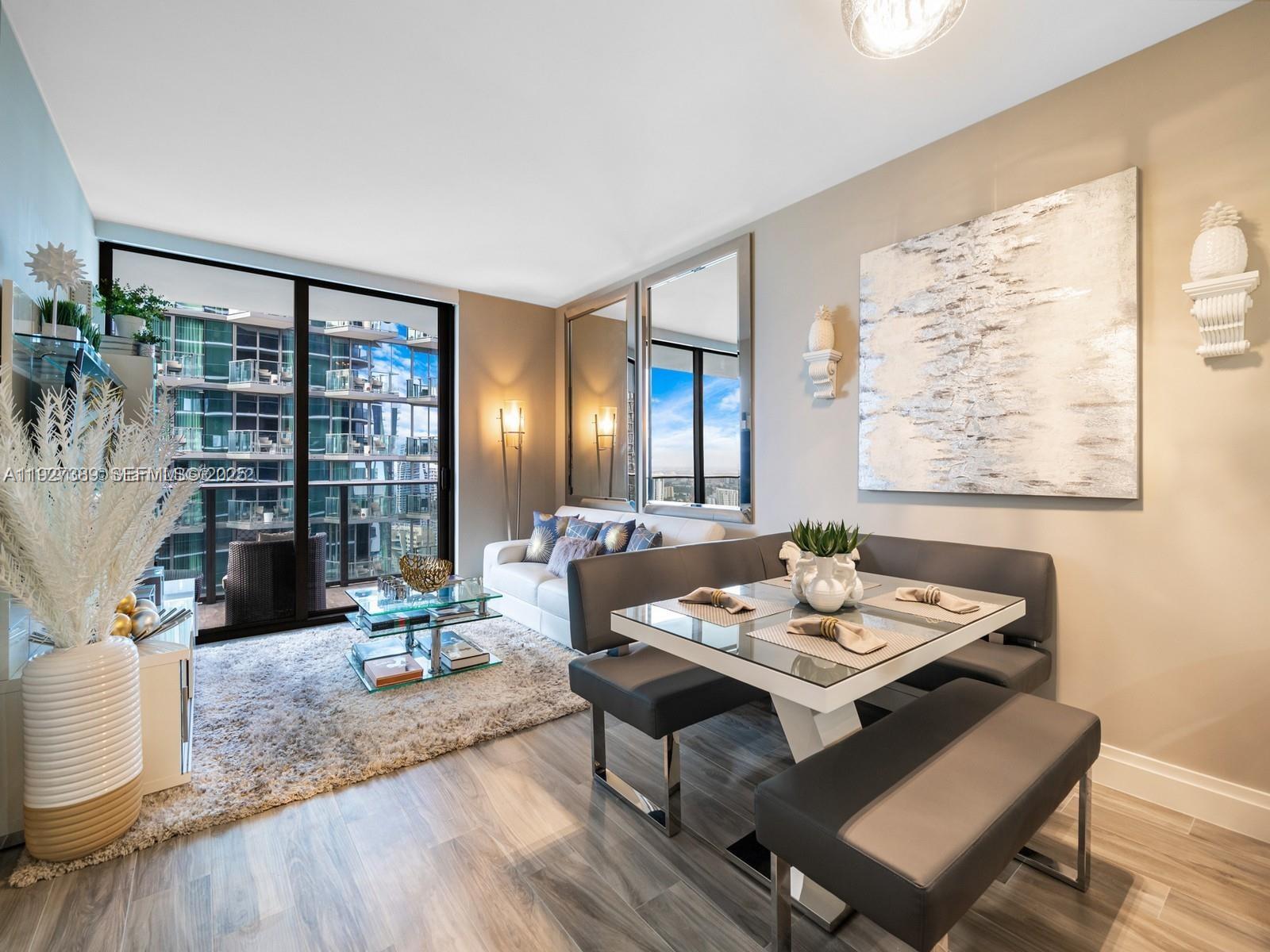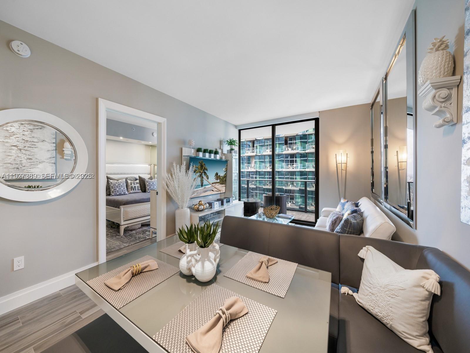 Fully furnished condo in one of Brickell's most sought-after buildings, SLS Lux. Take the private elevator up to your residence where you'll find the entire condo fully equipped. Enjoy other modern luxuries this unit offers, including motorized blackout shades, a kitchen w/ Sub-Zero appliances, bar & booth style seating, 2 full baths w/ glass enclosed showers & enclosed toilet, a large balcony w/ water views, 7ft solid wood doors, custom trim throughout & tile work. The den makes a perfect home office. SLS Lux has resort style amenities including pool & cabanas, spa, sports court, outdoor theatre & BBQ, 24/7 concierge & is located right in the heart of Brickell, next to Brickell City Centre. 801 SMA RESIDENCES CONDO UNIT 3706 UNDIV 0.001670% INT IN COMMON ELEMENTS OFF REC 29216-0119