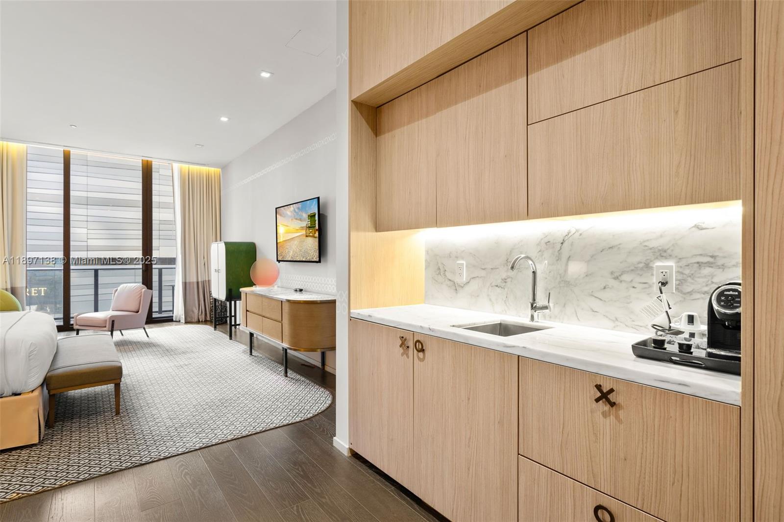 Stay Part-Time. Profit Full-Time. Beautifully furnished studio at SLS LUX, Brickell's most desirable hotel-residence with only 84 luxury hotel suites. This elegant unit features high ceilings, Smart Home technology, Italian kitchen cabinetry, and in-unit washer/dryer. Perfect for investors, enjoy resort living when you're here (unlimited use, no blackout dates!), while hotel management generates income the rest of the year, or rent it through AIRBNB. Indulge in 5-star amenities: 2 pools, cabanas, poolside bar, BBQ area, gym, spa, tennis, basketball, party room, concierge, and 24/7 security. Incredible walkable location with a perfect 100 Walk Score, just a stone’s throw away from Brickell City Centre and a variety of restaurants. The most modern luxury condo-hotel opportunity in Brickell! 801 SMA DESIGNER SUITES CONDO UNIT402 UNDIV 1.21981% INT IN COMMON ELEMENTS OFF REC 29316-2083